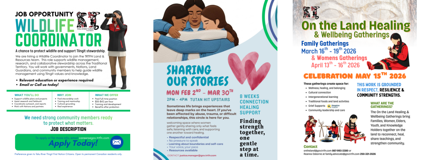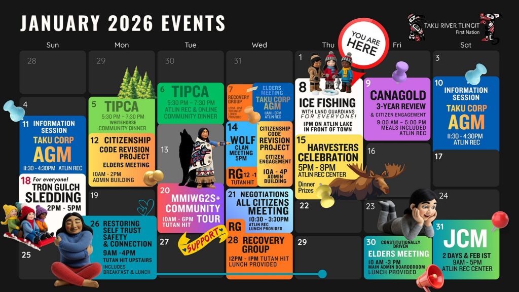Welcome to the Taku River Tlingit First Nation government website The Taku River Tlingit First Nation (TRTFN) has Traditional Territories in the Yukon Territories, Northern British Columbia, Canada and Alaska, United States. About us Read All News TAAKU NEWSLETTERS TRTFN CONTACT LIST